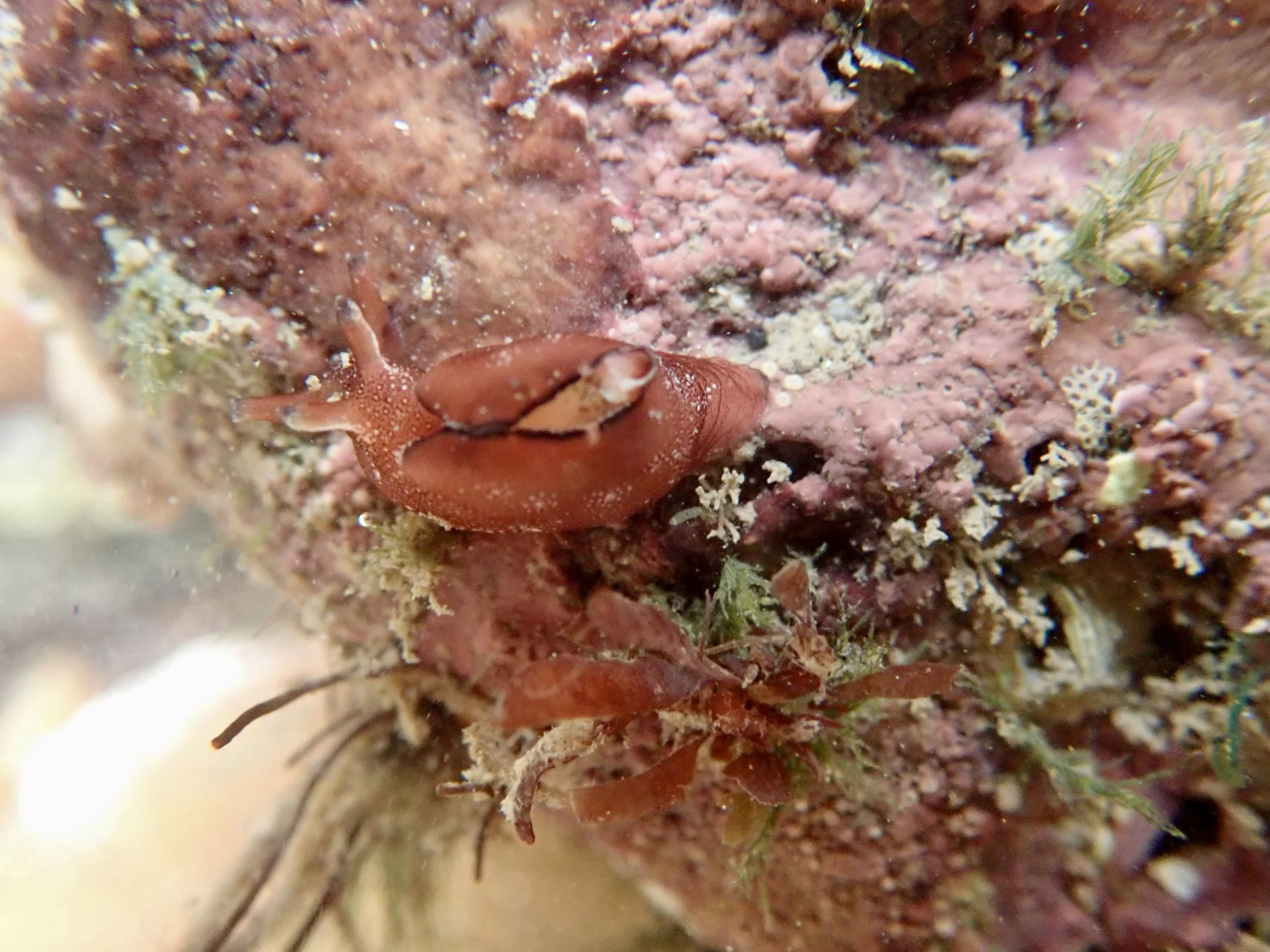 A tiny juvenile Sea Hare, blending in with the rockpool environment!